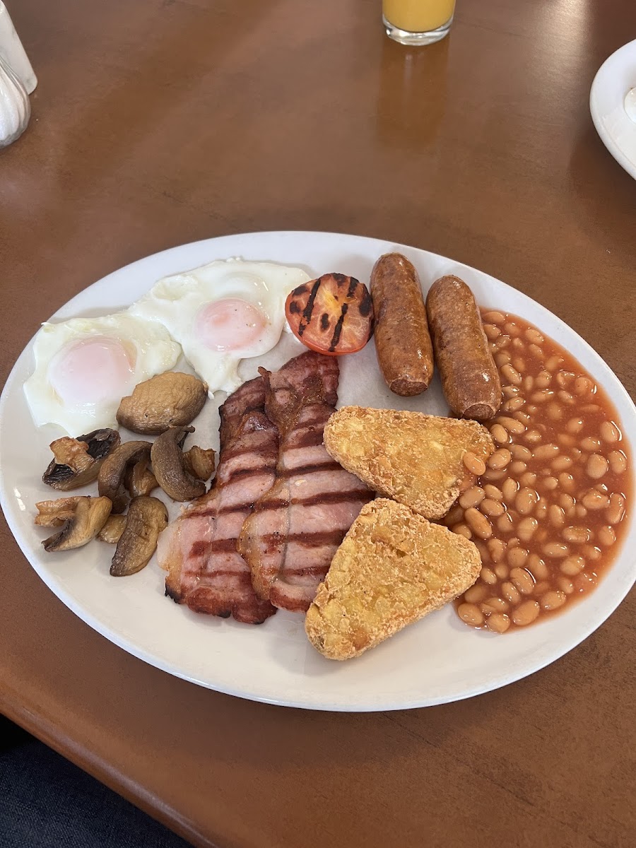 Let’s talk food. One of the most talked-about dishes is the 2 Egg on Toast with Beans, Mushrooms, Tomatoes and 2 Hash Browns. It’s the kind of full English experience that feels both nostalgic and genuinely satisfying. And if you're a tea lover, don’t skip the Pot of Tea-served hot, strong, and with a generous pour, it perfectly complements the breakfast vibe.